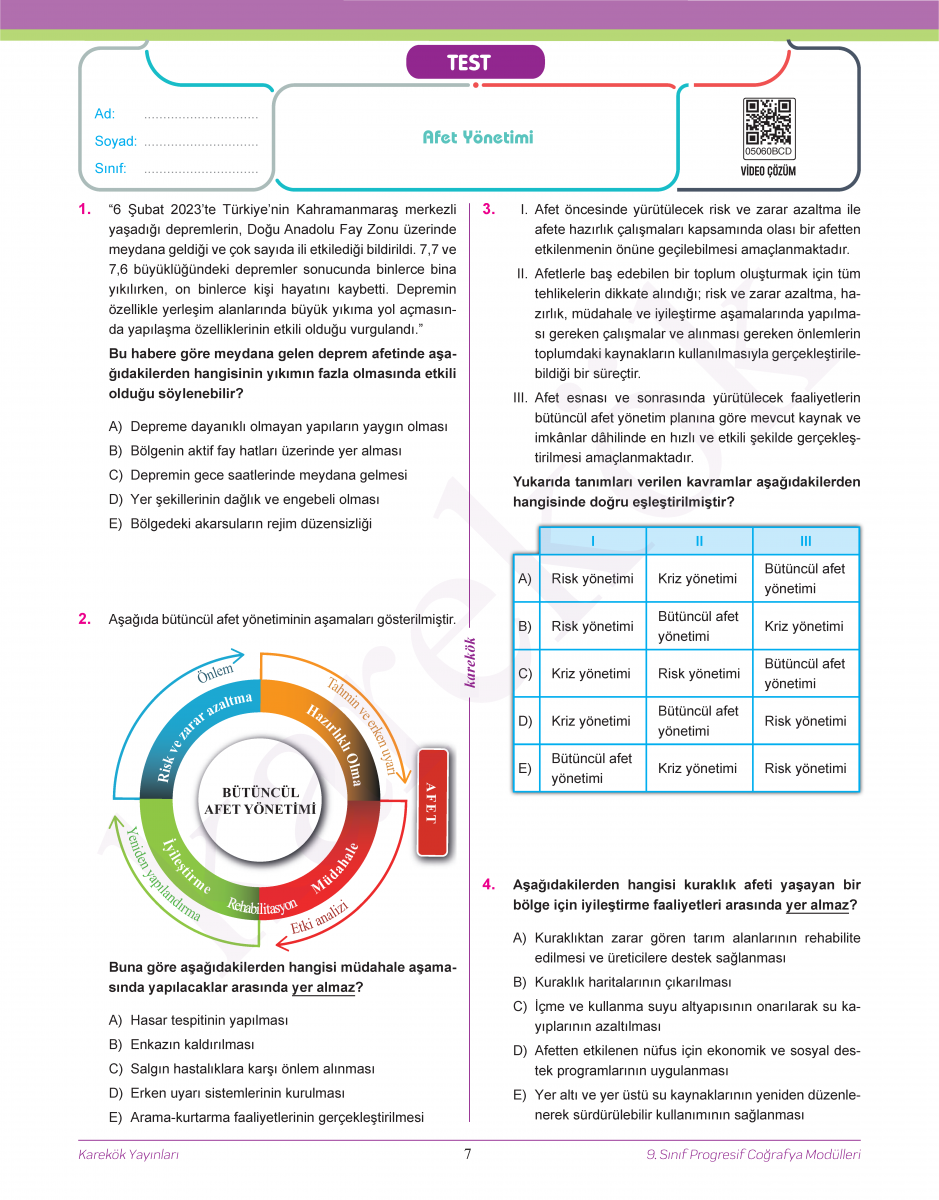 ÜNİTE 6 AFETLER VE SÜRDÜRÜLEBİLİR ÇEVRE